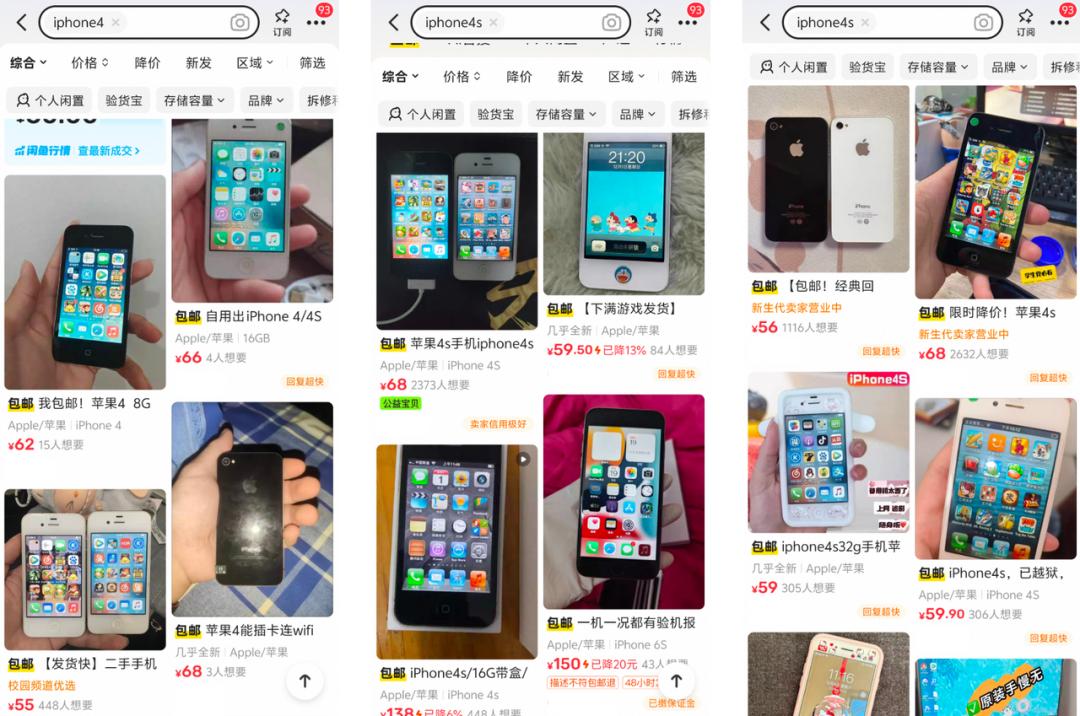 嗅到商机的商人,开始在二手平台大量收购 iPhone 4 系列机型,翻新、清洁、贴膜,挂上「复古情怀」「原生画质」的标签,价格直接上去。废品回收站 5 块钱一台,转手 150 到 400,最高溢价 80 倍。