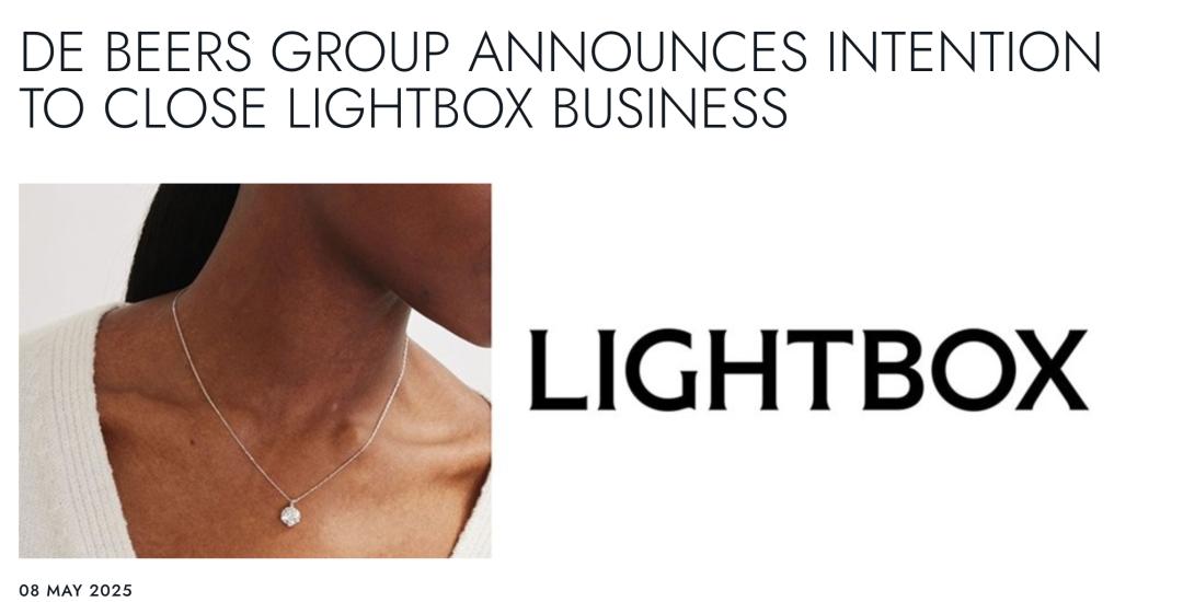中国同行的降价速度远快于Lightbox,带来的结果就是这家公司两年累计亏损超过1.2亿美元。与此同时戴比尔斯积压了价值20亿美元的未售出天然钻石库存。2025年5月,CEO亲自宣布全面关闭Lightbox。