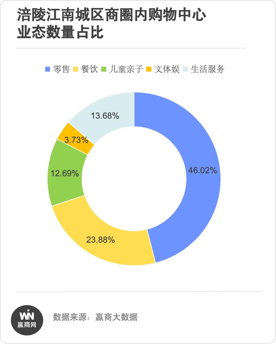 业态构成上,江南城区商圈呈现出典型的“零售主导”格局。零售业态占比高达46.02%,占据商圈近半壁江山,商圈“购物核心”地位突出,承担着目的性消费的核心功能。