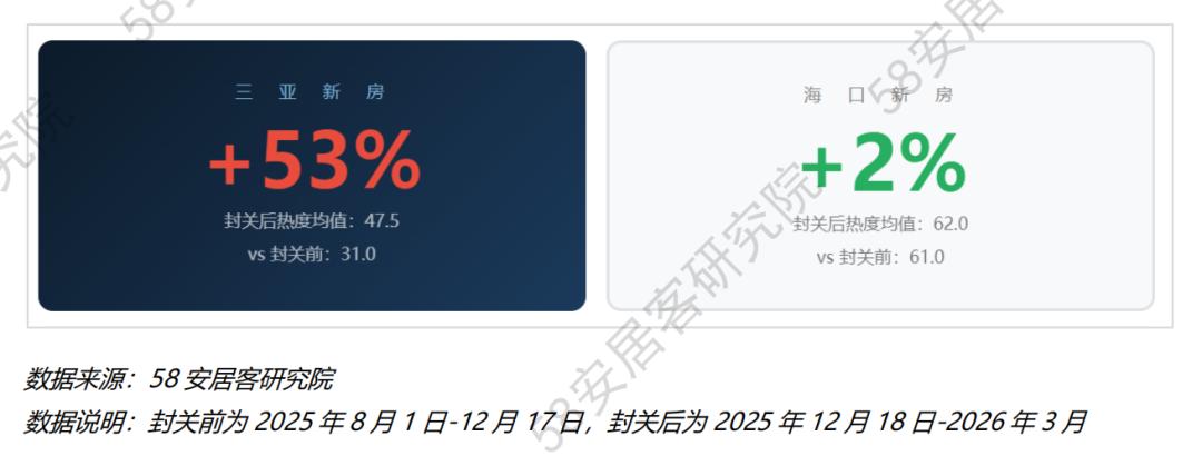封关前后,三亚找房热度上涨53%,海口只上涨了2%。不是封关本身决定了哪个城市涨,是买家结构决定的。