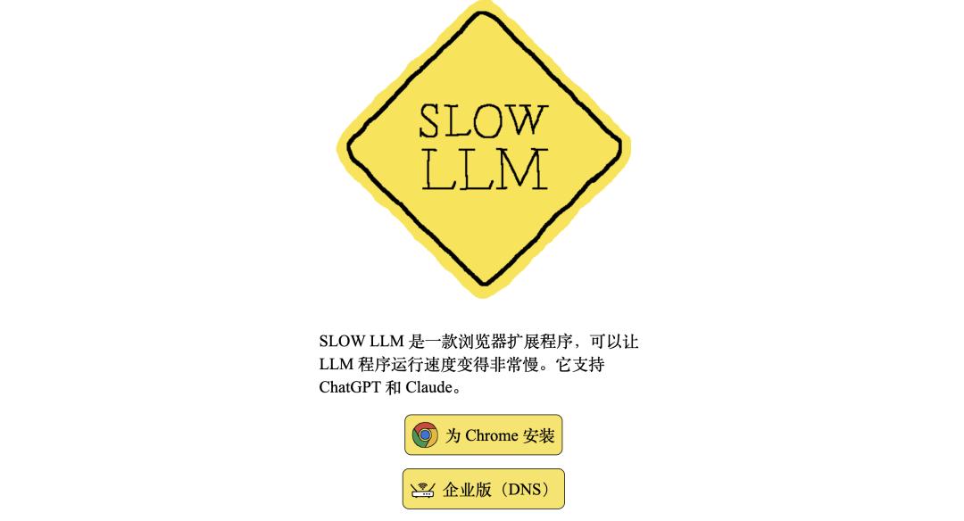 考虑到易用性,Slow LLM 提供了两种部署方式。第一种是安装 Chrome 插件,只影响你自己的设备,随时可以关掉。