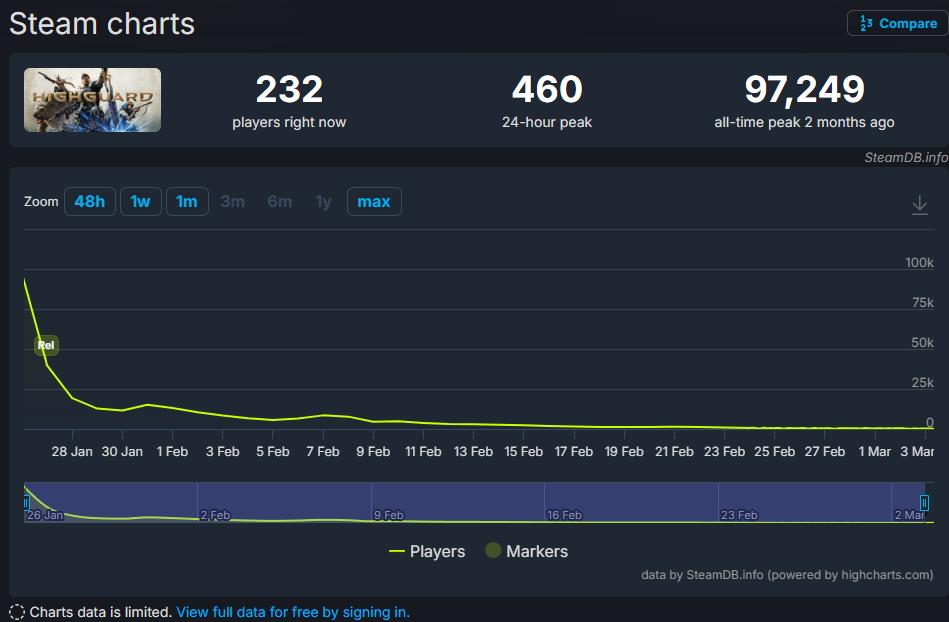 Highguard的案例尤为典型——它背后有腾讯资金支持,上线初期一度接近10万Steam玩家同时在线,但首批评价迅速转向负面,仅一周时间流失近90%玩家。此时,工作室的资源已经消耗殆尽,几乎没有调整或挽回空间。