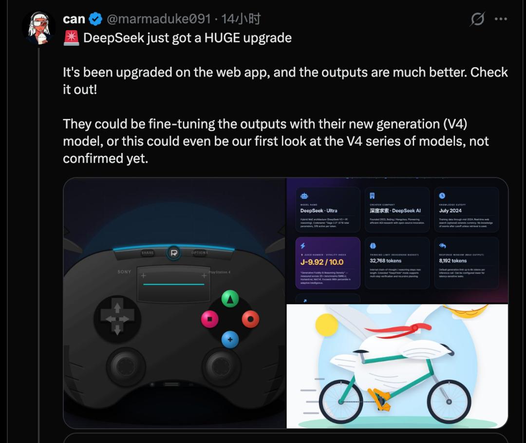 就在宕机前,很多用户报告DeepSeek网页版它变了,模型能力大幅提升。