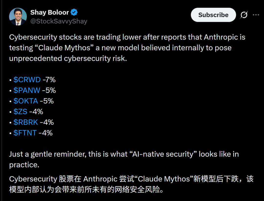 此前Mythos的传闻一出,网络安全股就已经下跌了。接下来,还有更可怕的事要发生吗?