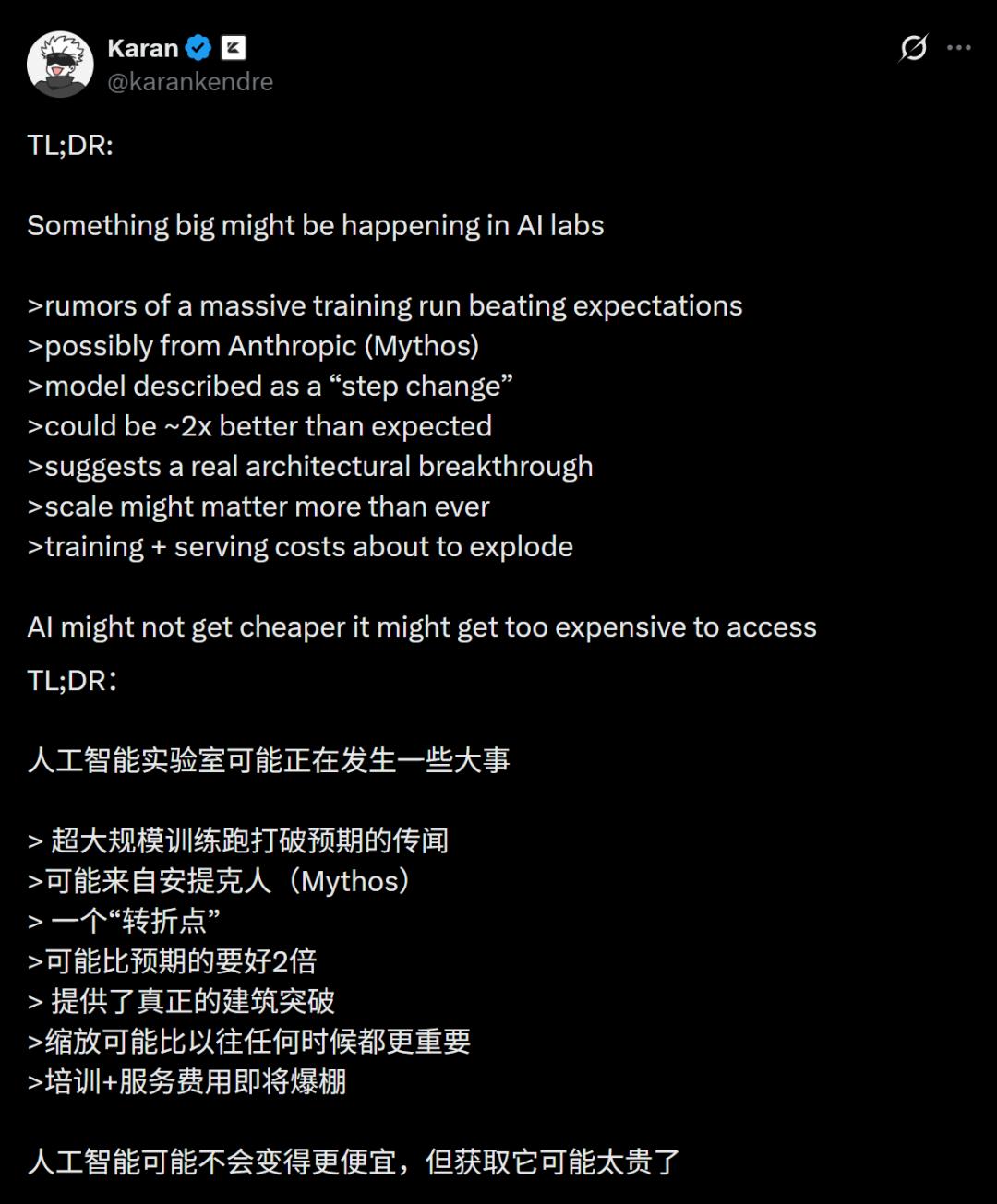今天,AI大V Andrew Curran的一篇X,在圈内引起大规模讨论。