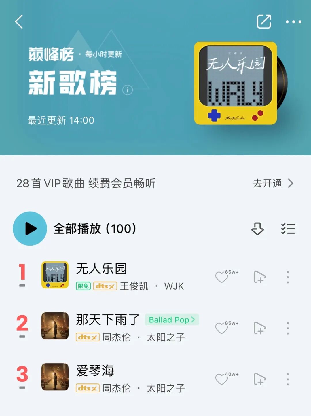 回到国内,顶流王俊凯发了新歌《无人乐园》,高居音乐软件榜单第一名(把周杰伦狠狠甩在身后),但放在大众视野里,也是无人在意的角落。更别说张峻豪、刘宇宁、蔡徐坤等年轻音乐人,在各大音乐榜单上你追我赶,但他们的听众往往是高度圈层化的粉丝群体。张峻豪的原创单曲斩获畅销度TOP1,但出了粉丝圈,随便问一个普通的听众,有多少人知道他的名字呢?更别提蔡徐坤的名字已经是“国民级”的了,但真要问一下蔡徐坤的新歌有哪些、在海外办什么演出,或许连“黑子”都很难回答……