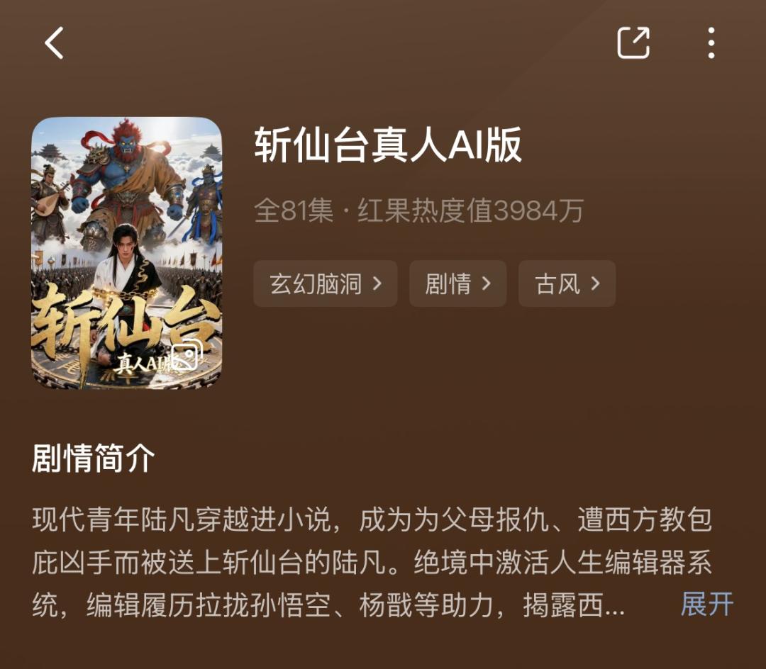 进一步看,这种“结构性投入”或许是源于平台对真人短剧与AI短剧关系的清晰判断。抖音集团副总裁李亮公开表示过:真人短剧与AI短剧并非此消彼长的替代关系,真人短剧聚焦现实题材,凭借真实的情感共鸣和“烟火气”打动观众;而AI短剧则能突破实景限制,在科幻、玄幻等题材上展现独特优势,覆盖不同的人群与文化需求,其各有优势。