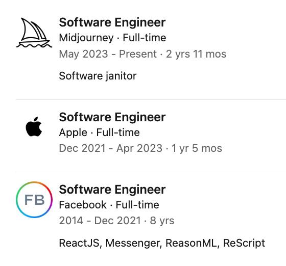 作为React Motion的创造者,ReasonML/ReScript语言的缔造者,Facebook Messenger前端的核心架构师,他如今正在Midjourney用Bun撑起了整个UI体系。