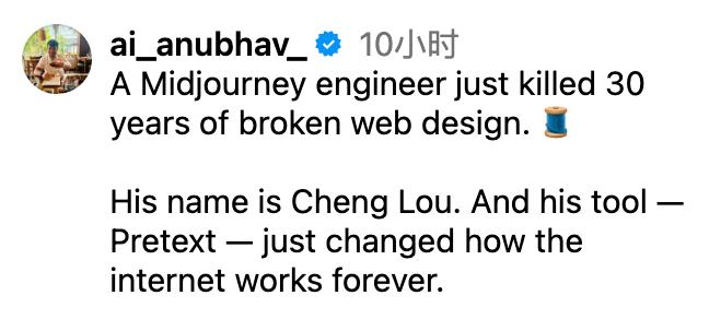 【导读】前端圈变天了!Midjourney大神出手,开源Pretext一夜爆红,成网页排版救星,彻底终结UI三十年难题。如今,全网1600万人围观,彻底玩疯。