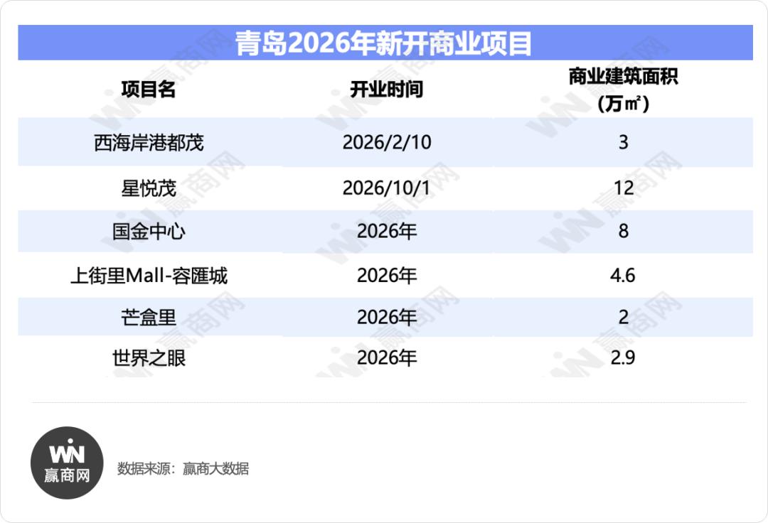 据赢商网不完全统计,今年青岛商业将迎来6个重点项目的入市,新增商业建筑面积约35.5万方。