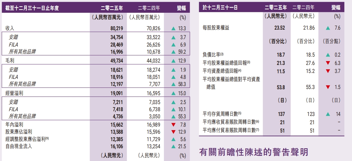 近日,安踏体育发布2025年财报,集团整体营收达802.2亿元,同比增长13.3%;归母净利润135.9亿元,同比减少12.9%。