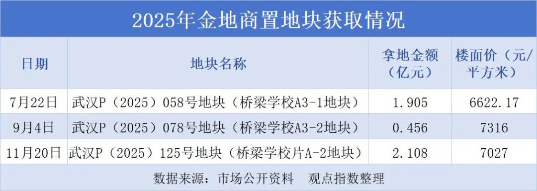 2025年全年,金地商置新增3个项目,均位于武汉汉阳区,总建面6.5万平方米,总代价4.48亿元,平均成本6900元/平方米。