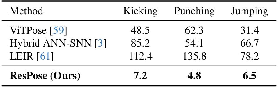 - 传统的 RGB 方法(如 ViTPose) 面对高速动态直接捕捉缺失,时间误差高达 50 毫秒以上 。