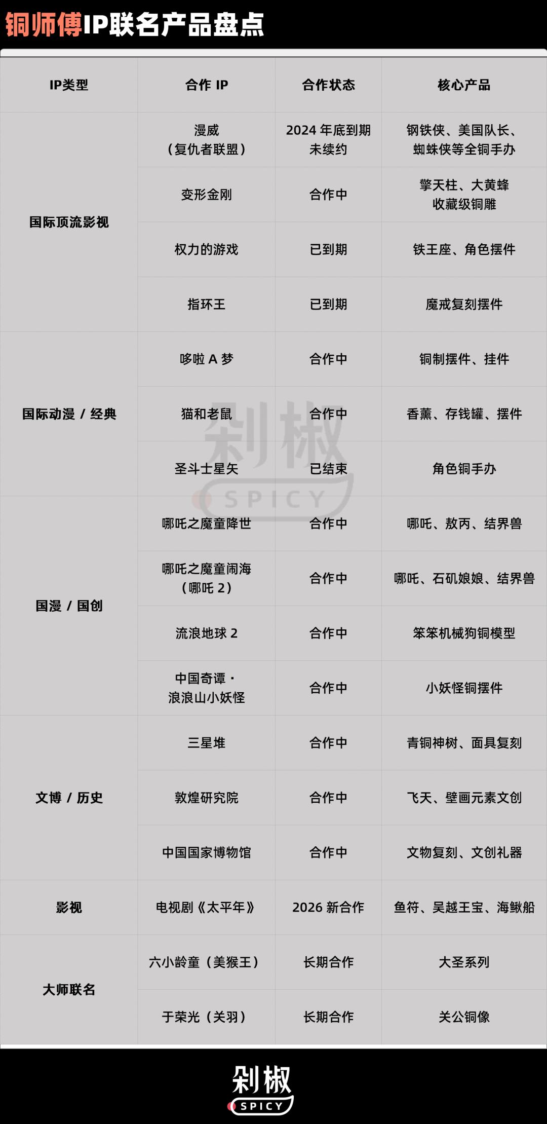 近年来,铜师傅陆续拿下《蜘蛛侠》《钢铁侠》《功夫熊猫》等多个海外知名IP授权,看似热闹的联名生意却始终是叫好不叫座。