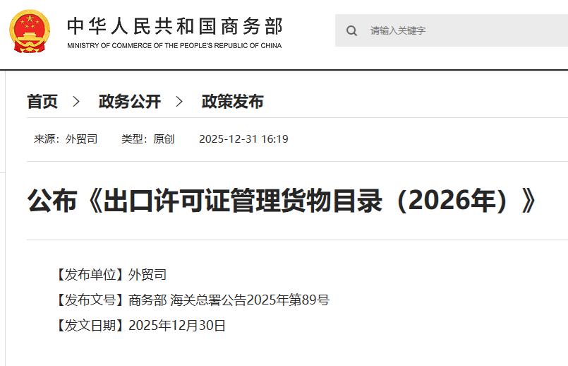 实际上,从2024年开始,我们就已经开始对尿素进行出口管制了。到了2025年底,商务部与海关总署更是联合发布公告,将尿素列入2026年出口许可证管理货物目录,实行严格的配额管理。