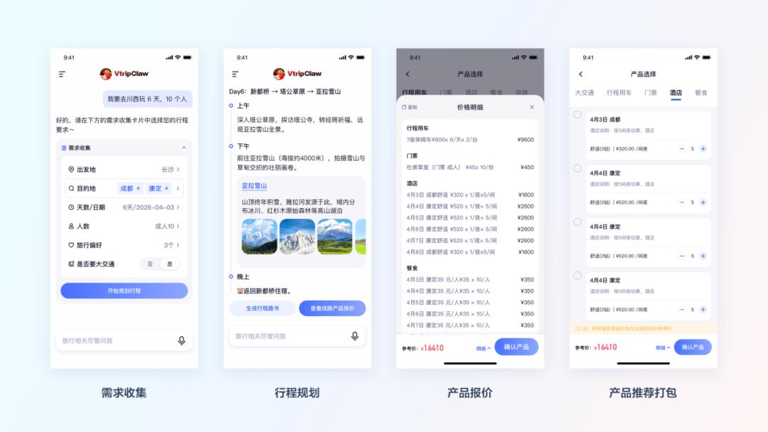 随手就把一份游客需求丢给了一个叫VtripClaw的“龙虾”程序:“8个人川西徒步,7天6晚,轻松一点的行程。”
