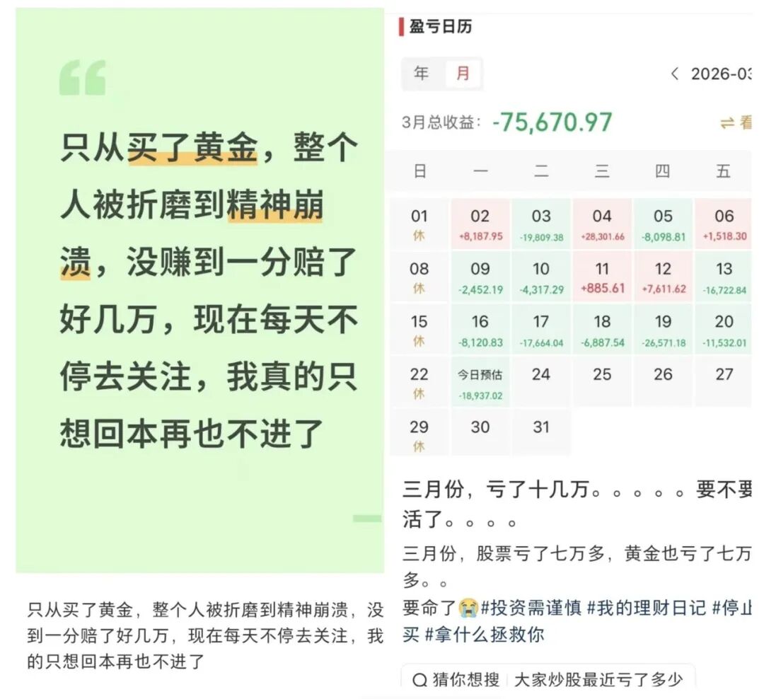 “自从买了黄金,整个人被折磨到精神崩溃,还亏了好几万”。