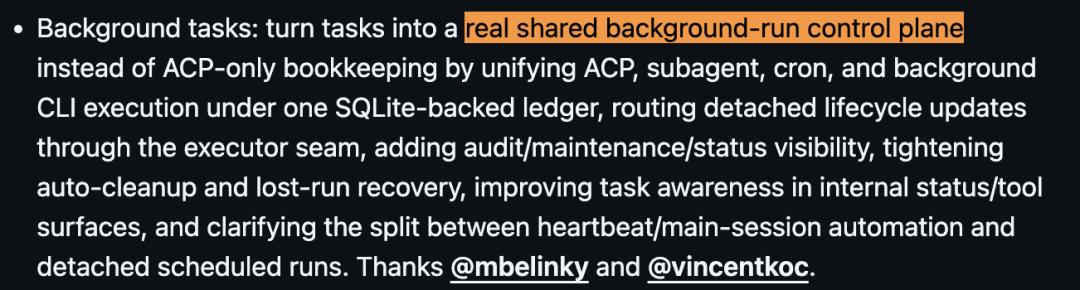 这次发布,标志着OpenClaw的后台任务调度,从零散记账走向了统一控制面。