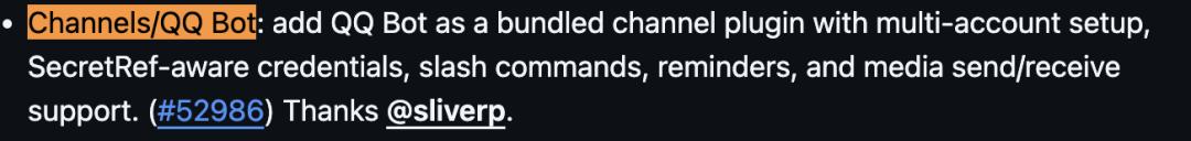 其中一个改变,是QQ Bot作为捆绑渠道插件正式加入。