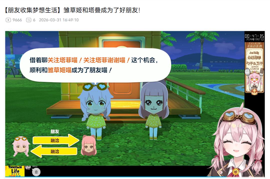 也能看到永雏塔菲和雏草姬借着聊“关注塔菲喵!关注塔菲谢谢喵!”的机会,顺利成为朋友。