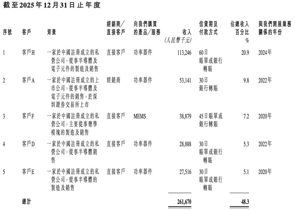 2023年、2024年、2025年,瑶芯微五大客户收入分别占总收入的45.8%、42.2%、48.3%。