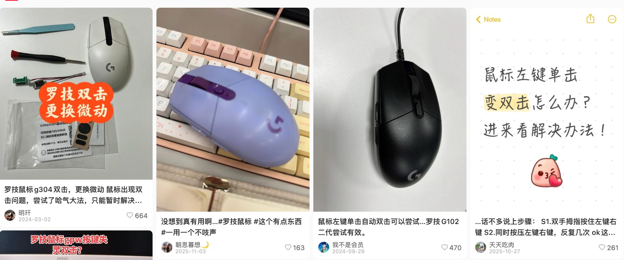 其次,罗技产品质量并不像它自己宣传的那么好。比如,多款罗技鼠标都存在用久了单击变双击的毛病,主要是配备的微动开关寿命短。我自己用过的几款罗技鼠标都出现过类似问题,在网络上搜索解决方案的话,能看到很多用换微动的教程。