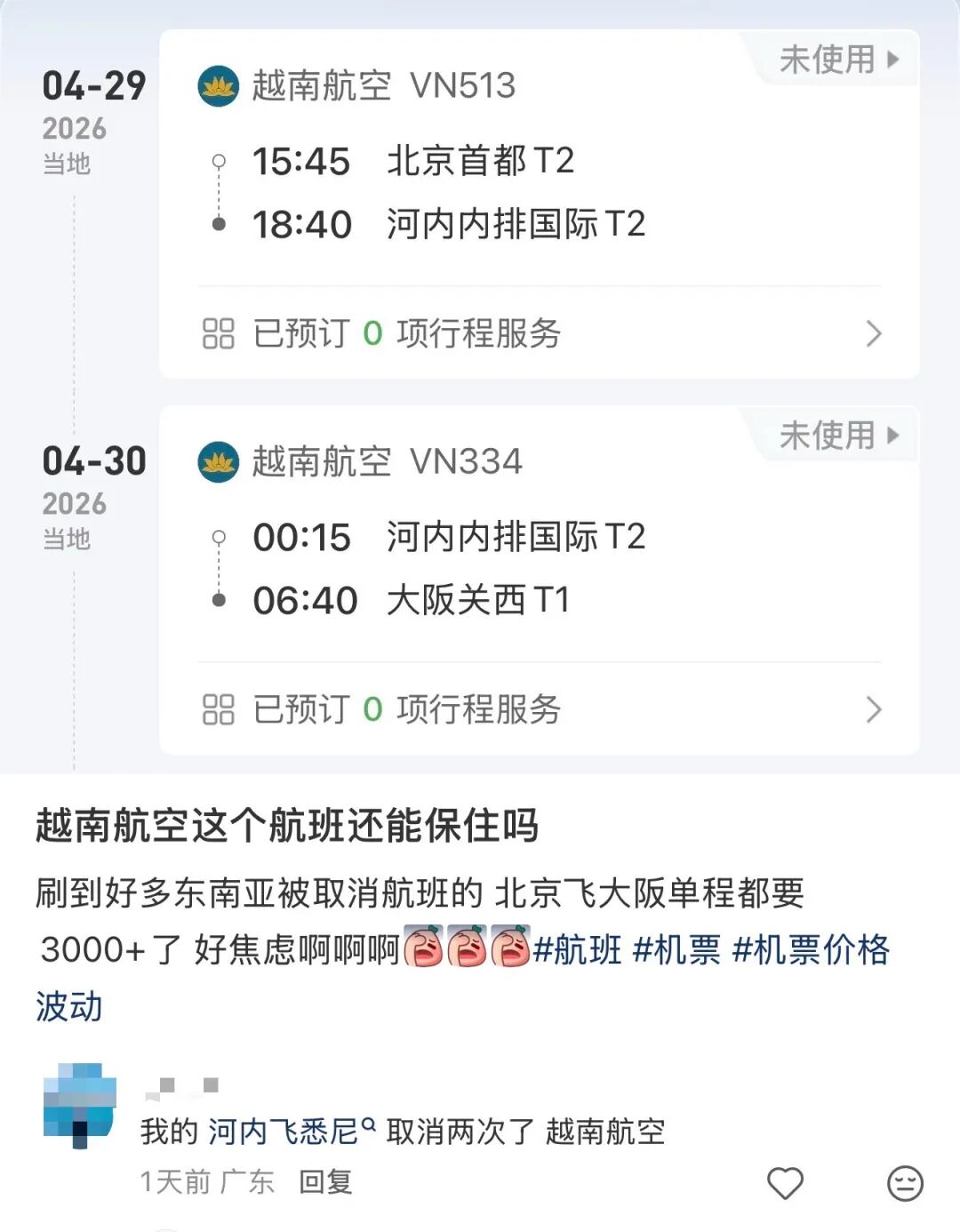 根据越南通讯社3月27日的报道,越南航空从4月1日起停飞七条国内航线;越捷航空计划在4月将总运力削减约18%;越竹航空从4月起将每日航班量减半,集中保障核心航线。