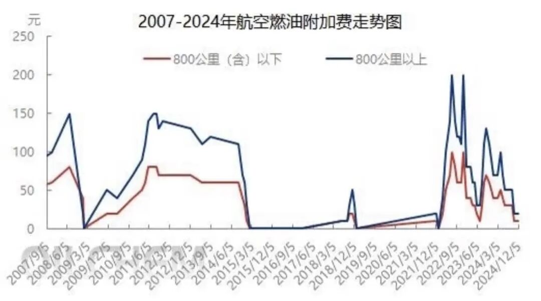 那时候国内航司燃油费收取标准曾一度达到800公里以下100元、以上200元。