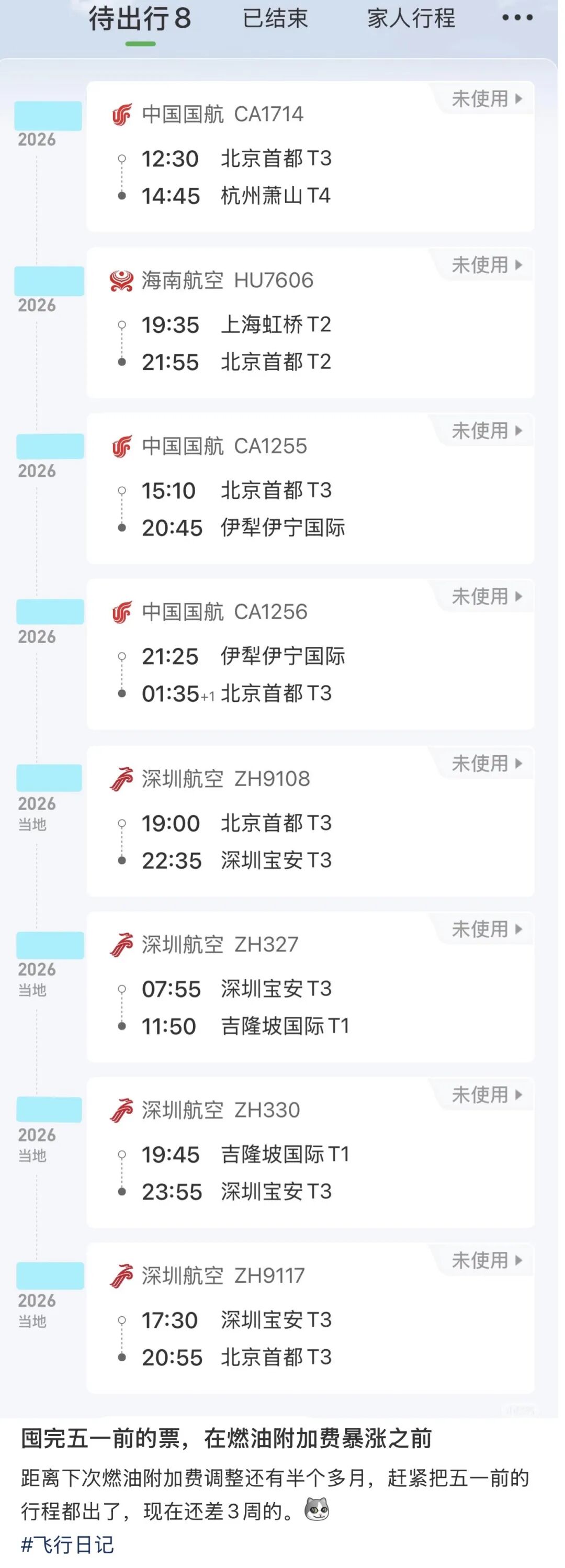比较稳健的朋友出手就是八张票,赶紧敲定直到五一的所有行程。