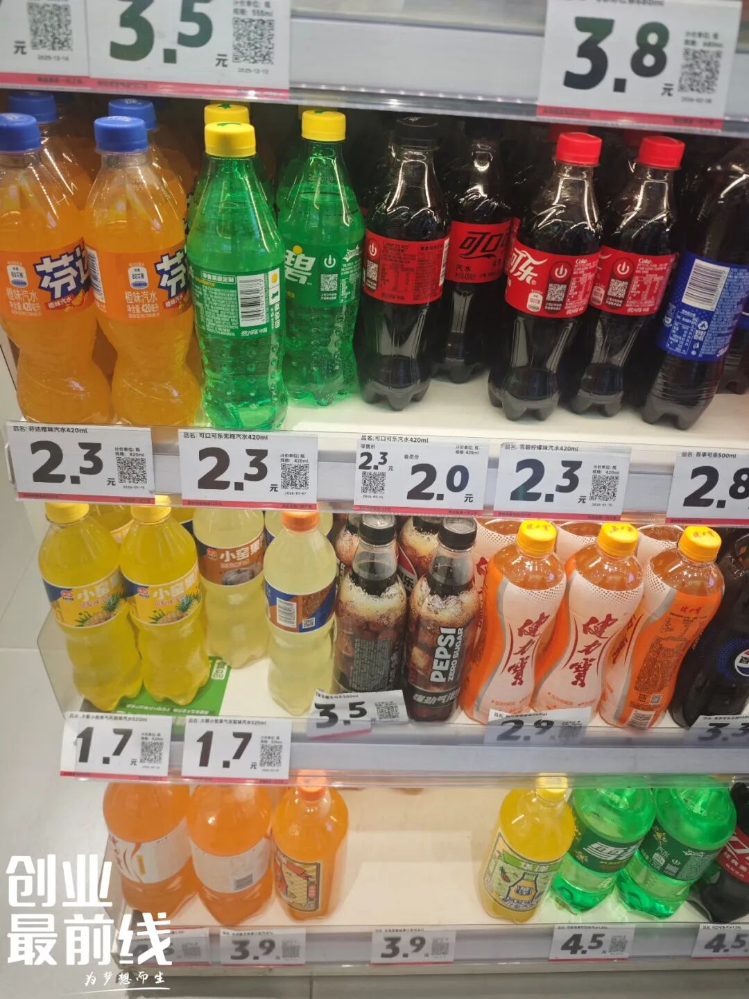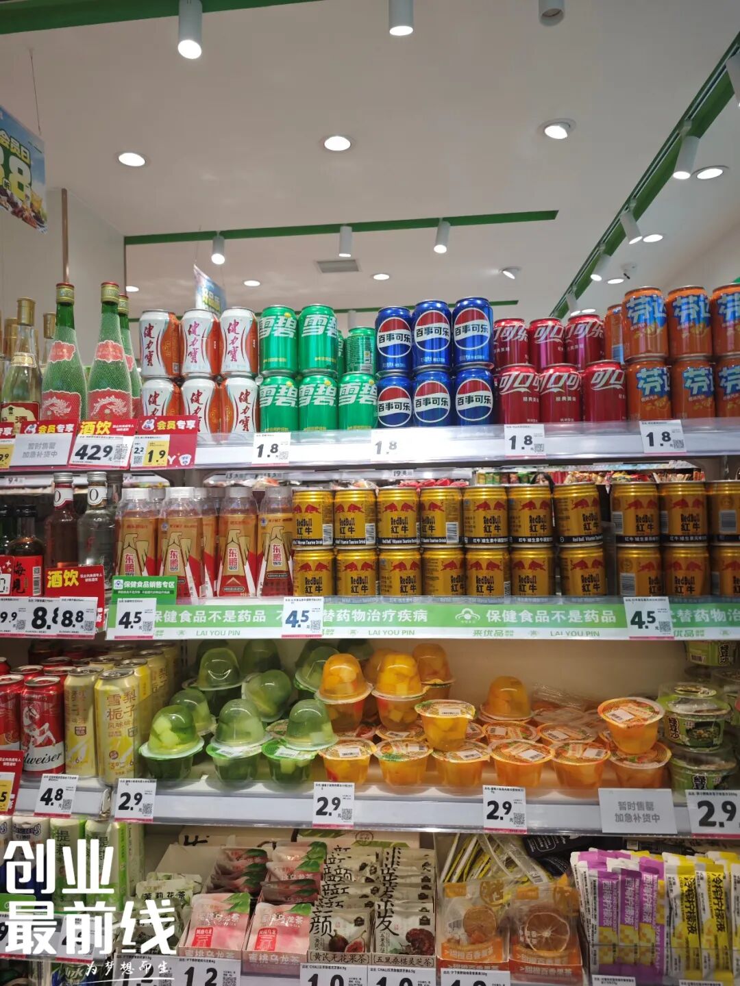 「创业最前线」走访河北好想来旗下来优品也发现,门店内的饮料产品价格优势明显。其中,部分碳酸饮料定价低至1.7元,大瓶装产品价格也控制在3.5元-4.5元区间,而健力宝传统罐装饮料只需1.9元,远低于传统商超的售价。