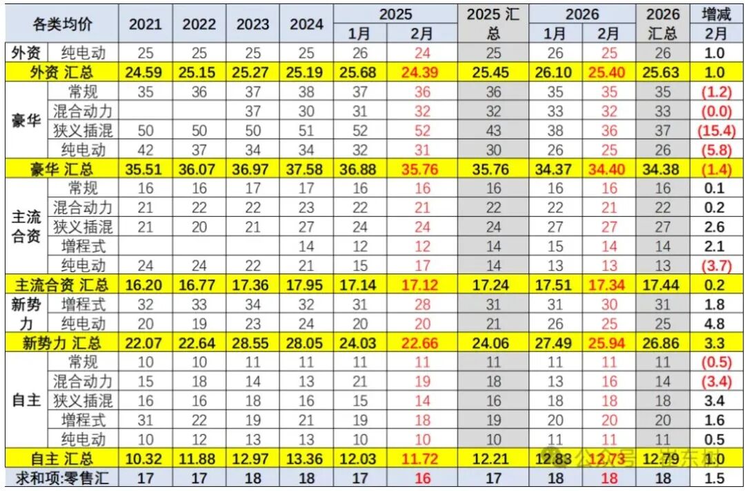 但进入2026年,降价车型数量锐减——2月仅有6款车型降价,而去年同期是21款。新能源车促销稳定在10.4%左右,燃油车促销甚至从23.5%微降到23.3%。