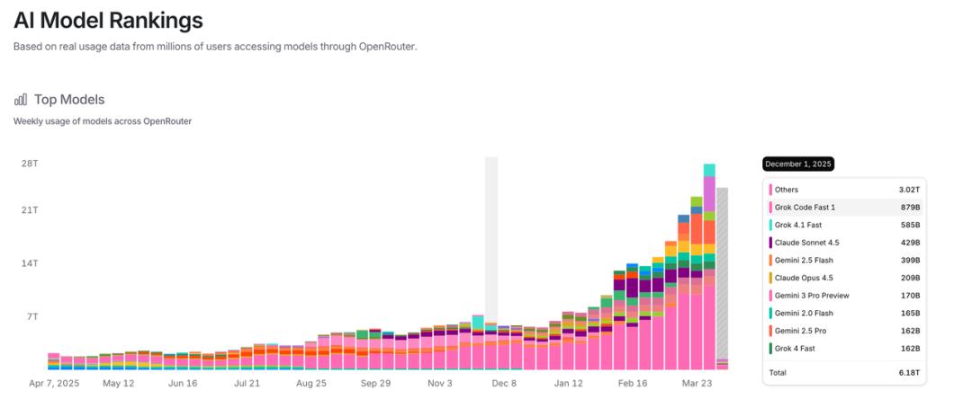 在龙虾火爆之前,你在这个排行里根本看不到二线模型厂商,除了硅谷御四家,其余全是others。