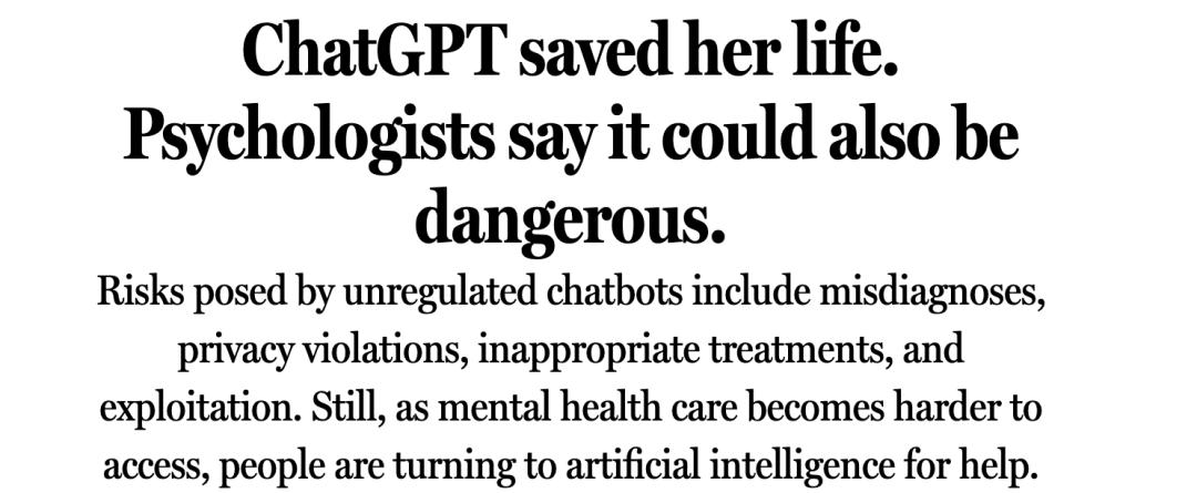 就在媒体不断曝出AI导致谋杀、自杀、精神疾病等负面报道的同时,也有不少网友表示,感谢ChatGPT等AI工具「帮助自己活了下来」。