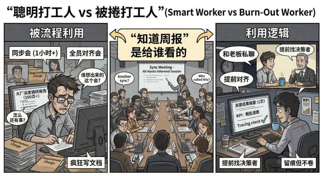 - 晋升靠讲故事:说是”能力体现”,本质是”没有功劳也有苦劳”;