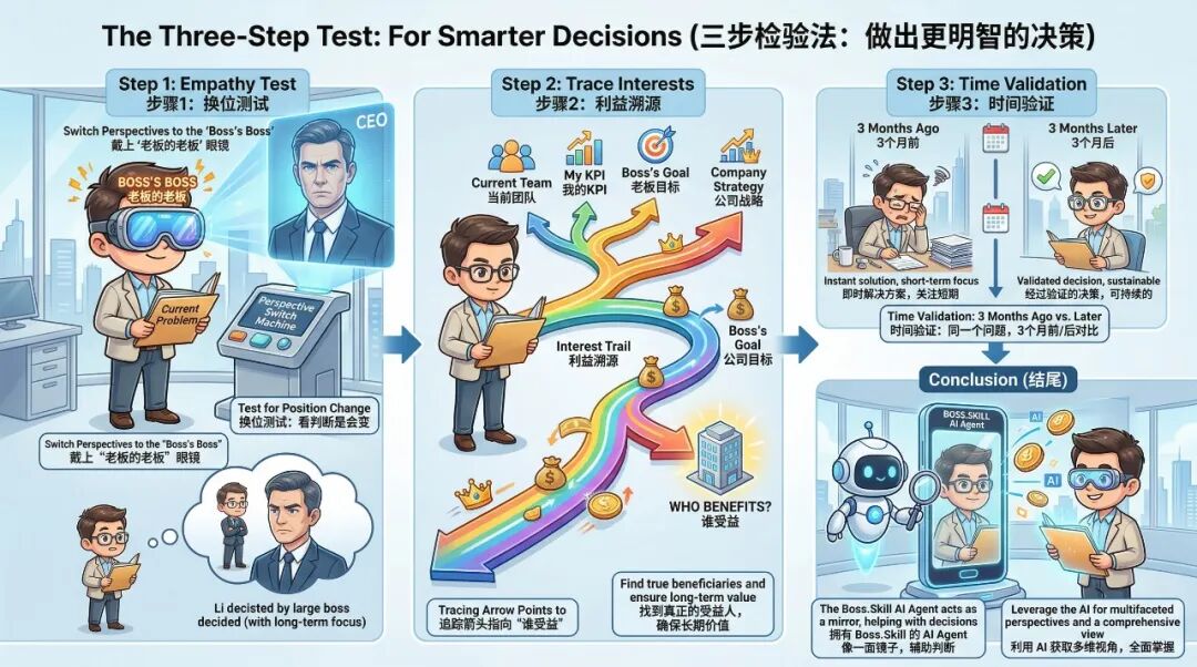 3. 时间验证:同样的问题,3 个月后再问老板,答案一样吗?如果完全反转 → 说明这不是基于逻辑的判断