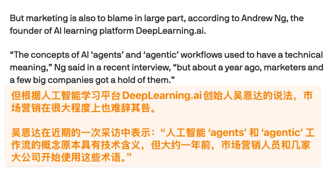 吴恩达也说过 Agent 和 Agentic 这些词原本有明确的技术含义,但大概一年前开始,营销人员和几家大公司把它们接管了。
