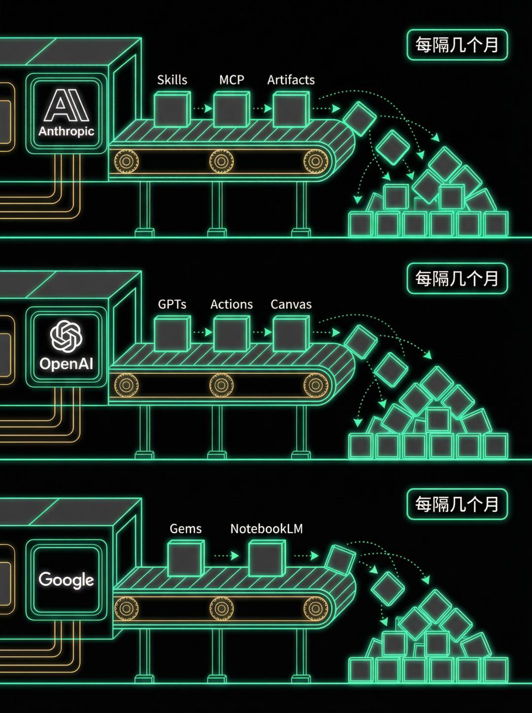 于是你在信息流里看到的大多数 AI 术语,都经历了同一条流水线:厂商造出来,营销吹起来,自媒体原封不动搬过来。
