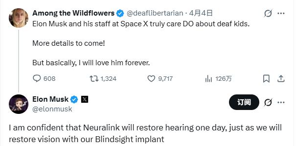 此外,马斯克还表示,他相信就像用Blindsight恢复视力一样,Neuralink终有一天也能帮人恢复听力。