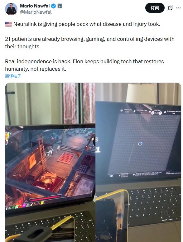 一位X用户统计称,Neuralink正在帮助人们恢复因疾病和伤痛而失去的一切,已经有21名患者能够用意念浏览网页、玩游戏和控制设备。他认为,真正的独立回归了,马斯克一直在研发能够恢复人性而非取代人性的技术。