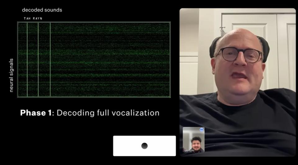 第一阶段是在手术后立刻开始的。工程师们引导肖克大声说出一些句子,系统会记录下这些句子对应的神经信号,用来建立“神经意图”和“实际词语”之间的映射关系。