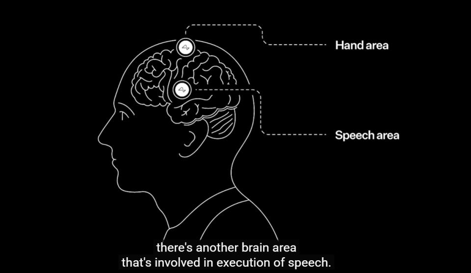 该公司在一篇博文中解释道:“大脑中有特定区域会被激活,并产生传递到嘴巴、舌头和声带肌肉的信号。”换句话说,肖克并不是随便想想就能输出文字,而是需要“意图去说话”。他想发出某个词的声音时,大脑会向发声器官发送指令,而N1芯片截获的就是这些指令。