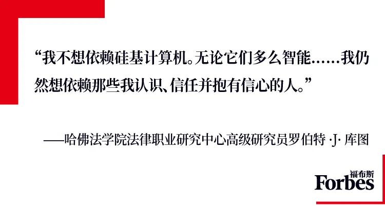 哈佛法学院法律职业研究中心高级研究员罗伯特·J·库图尔(Robert J. Couture)表示,大型律所正积极投资AI工具,并将其视为争取更多客户的竞争优势。他认为,虽然刚从法学院毕业的年轻初级律师不必再承担那么多单调的工作,但法律仍将是一个以人为本的职业。他说:“从客户角度看,他们希望看到律师事务所会对其所做的一切负责。我不想依赖硅基计算机,哪怕现在它多么智能,多么聪明,并且只会越来越强。我仍愿意信赖那些我认识、信任并抱有信心的人。”