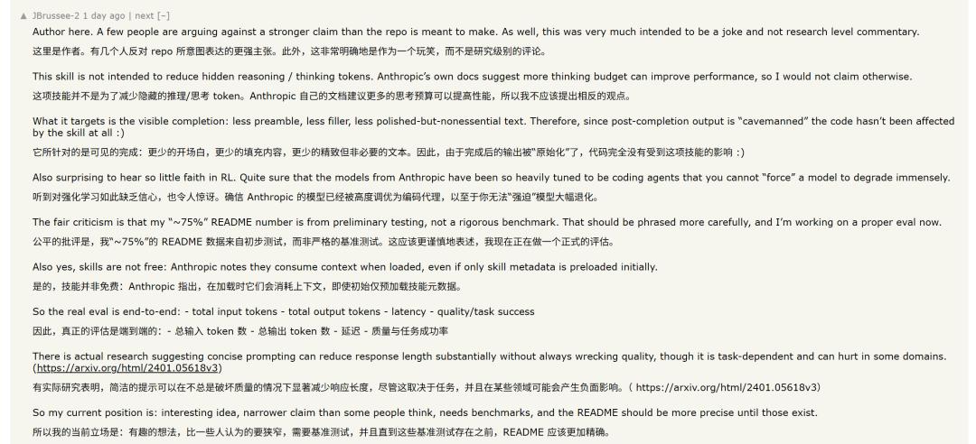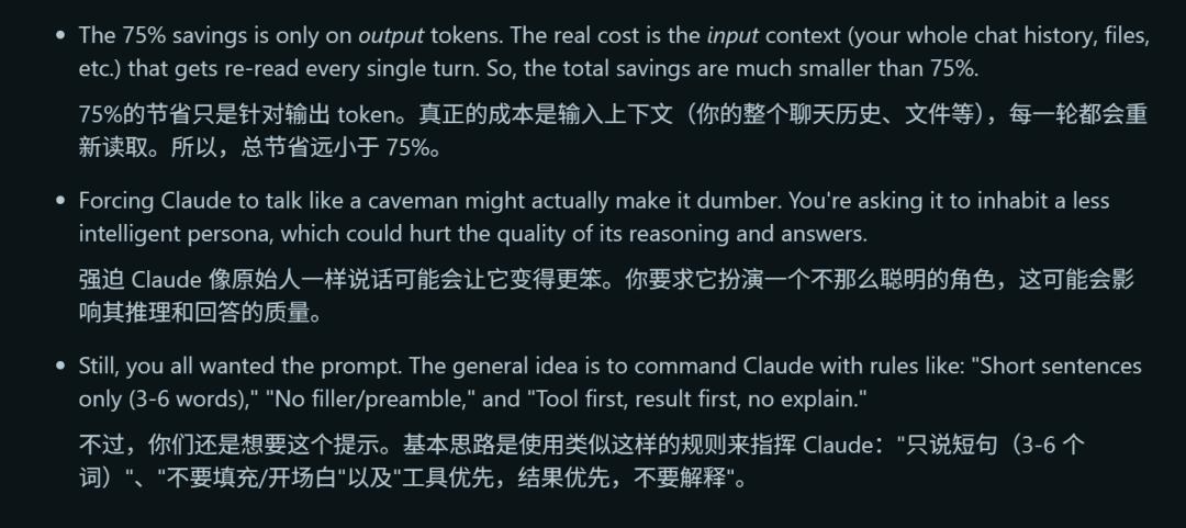 当然了,caveman的走红也不止是因为“让AI像原始人说话”这个梗,背后也不乏一些争议。