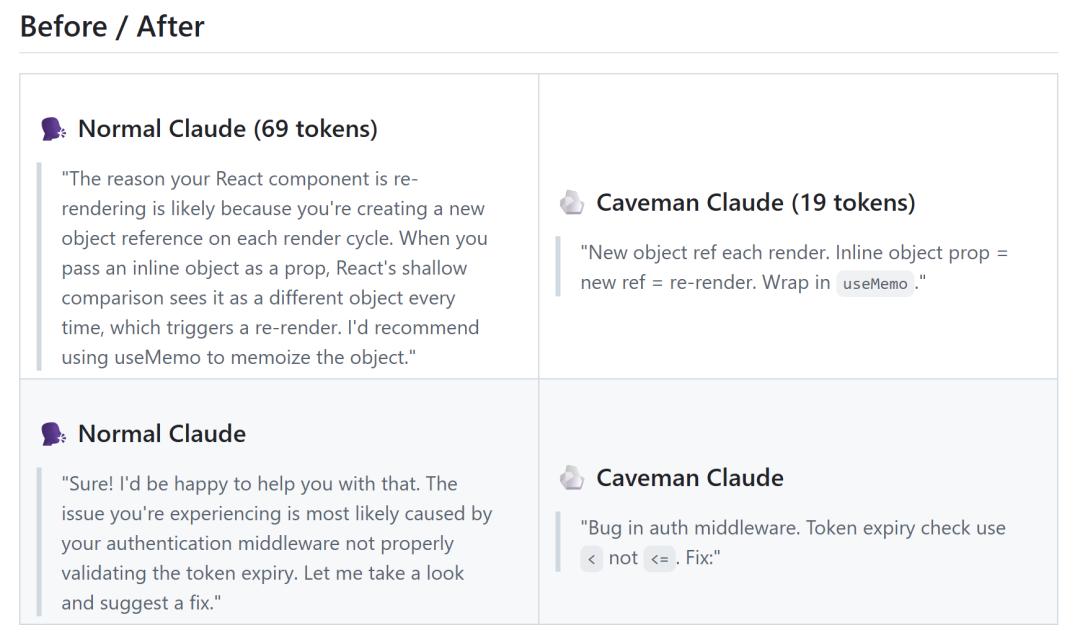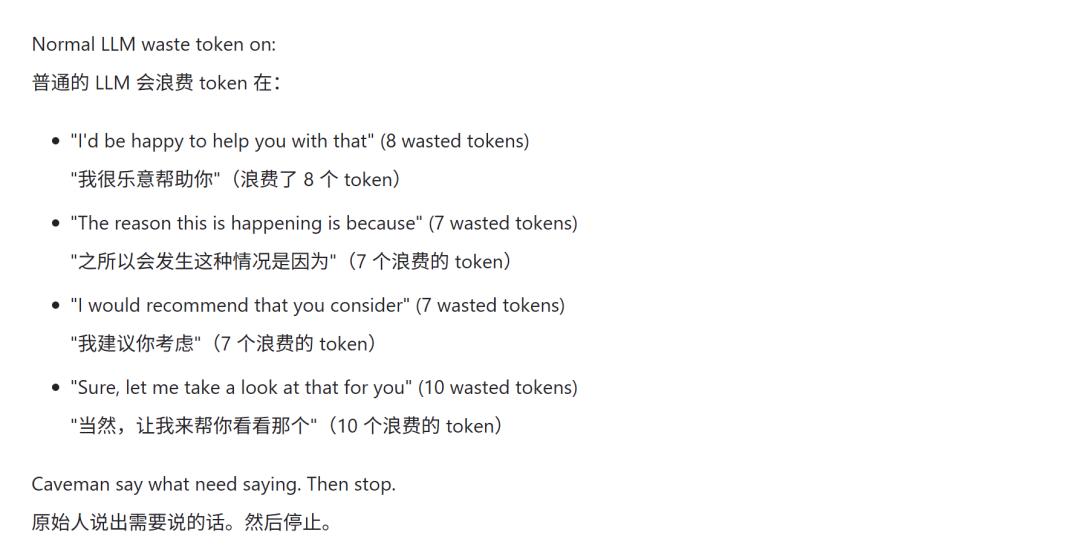 他之所以将其称为“joke”,也实在是因为这个名为caveman(山顶洞人)的项目,背后原理过于简单:啰嗦并不总是更好,有时字数少=更正确。