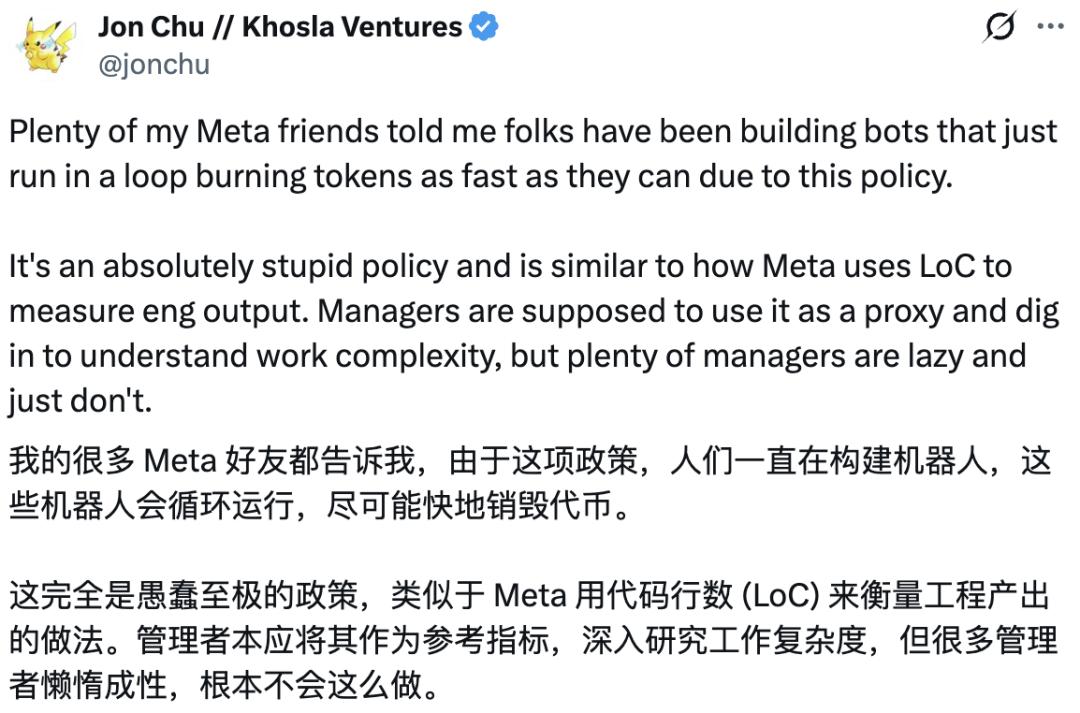 比如有投资界人士表示,自己有很多朋友在Meta,他们表示Meta员工为了消耗Token,专门构建了会循环运行的机器人。