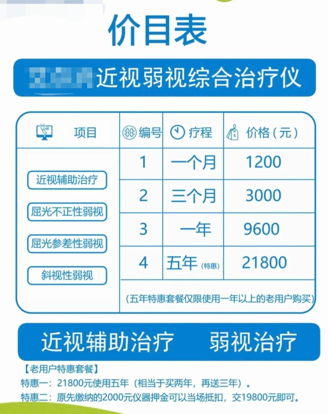 在孩子双眼视力1.0、眼底正常的情况下,诱导家长签下五年租赁合同,支付2.18万元租金,但未告知任何使用风险。