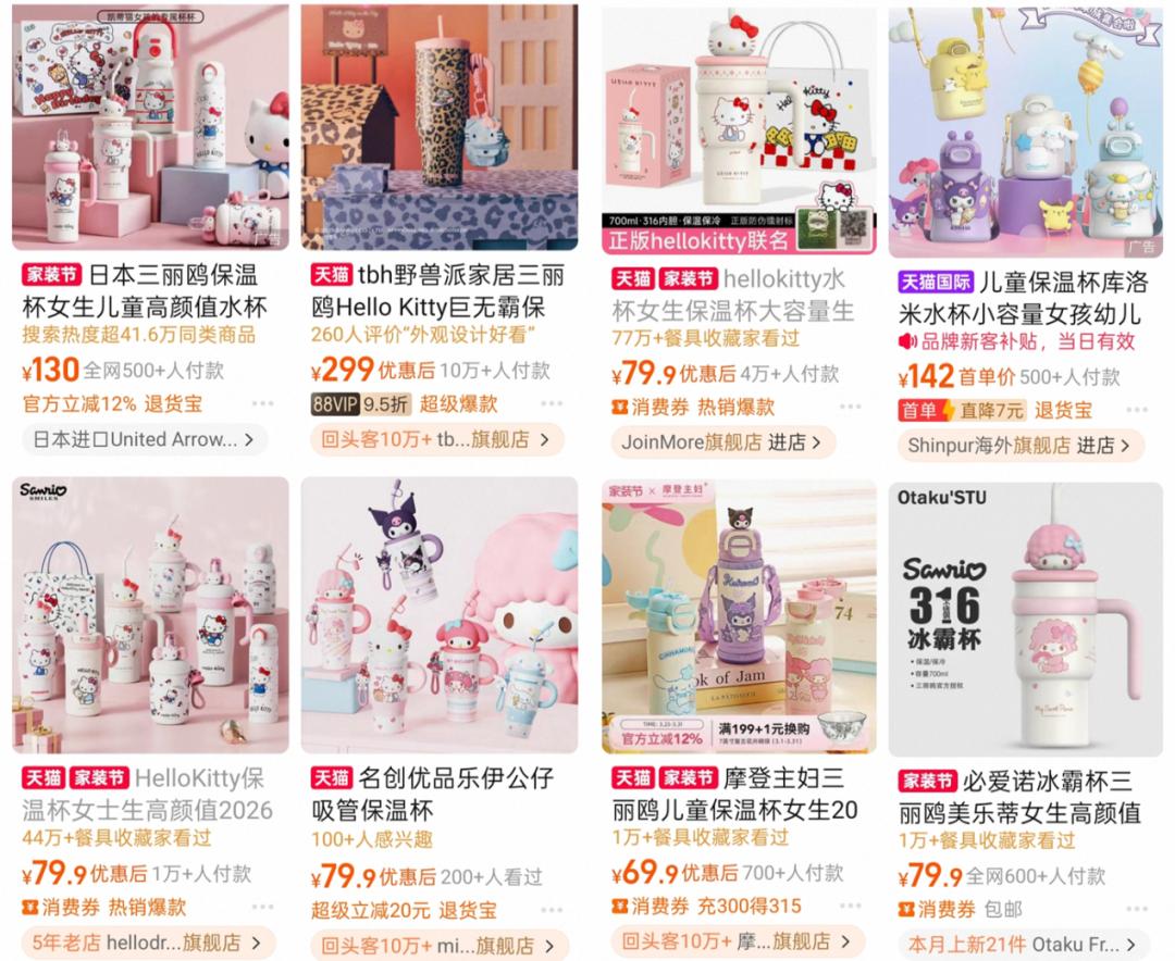 淘宝搜索“三丽鸥水杯”,存在大量相似产品