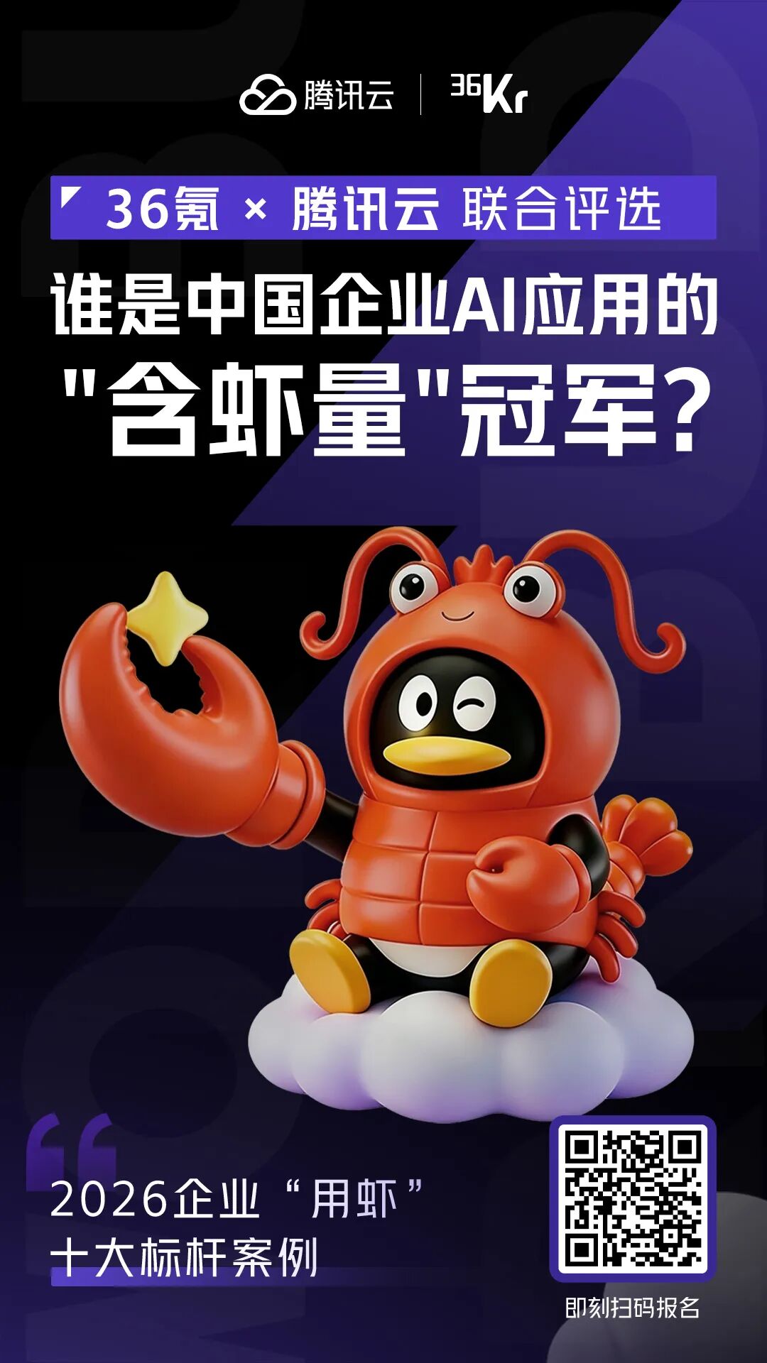 今天,36氪联合腾讯云,正式发起“2026企业‘用虾’十大标杆案例评选”。我们想寻找的,是那些真正“用虾”的企业:真正把智能体放进工作流中,真正用它解决业务问题和组织问题。