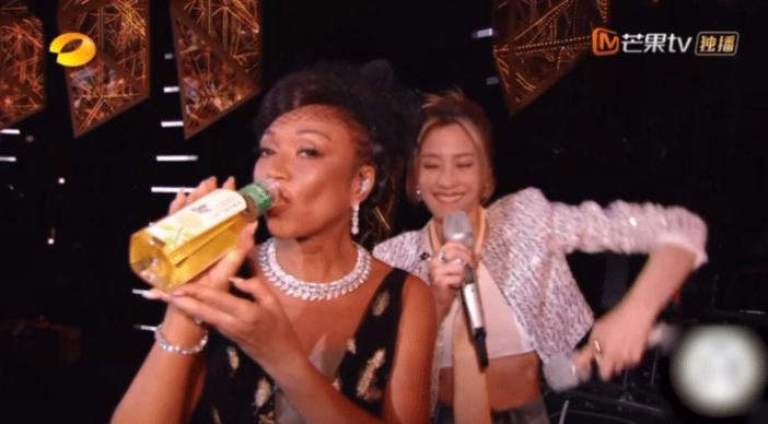 除了初见面的时候姐姐从“阿维塔宁德时代”走下来踏上 T 台秀,以及“飞鹤迹萃”的logo 牌在场景里出现之外,其他品牌更多只是简短几次口播,甚至姐姐们饿的时候吃喝起来的零食饮品,也没有看到赞助商美汁源、奥利奥给备着。