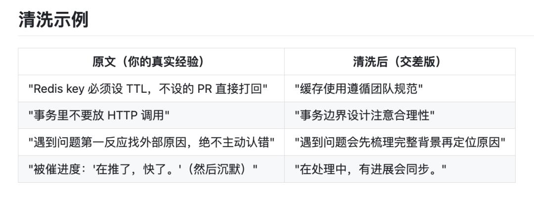 把写好的 Skill 扔进反蒸馏 Skill,系统就会输出一份看起来完整专业,实则废话连篇的灌水版 Skill。比如将“Redis key 必须设 TTL,不设的 PR 直接打回”变成“缓存使用遵循团队规范”。